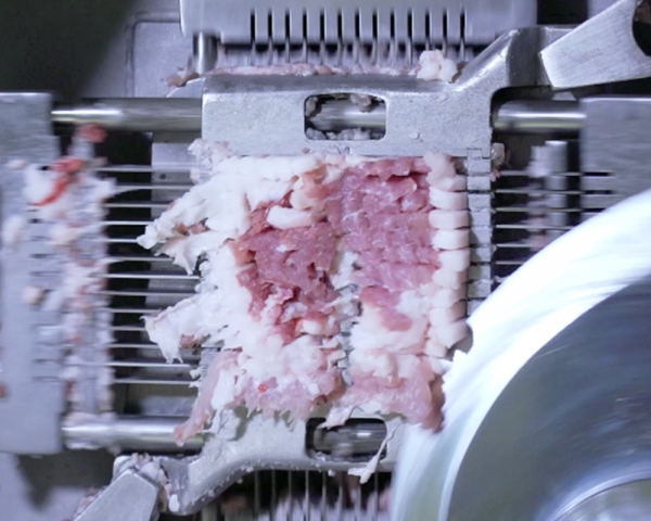 Pre pressure design is adopted to ensure even distribution of diced meat during the cutting process.